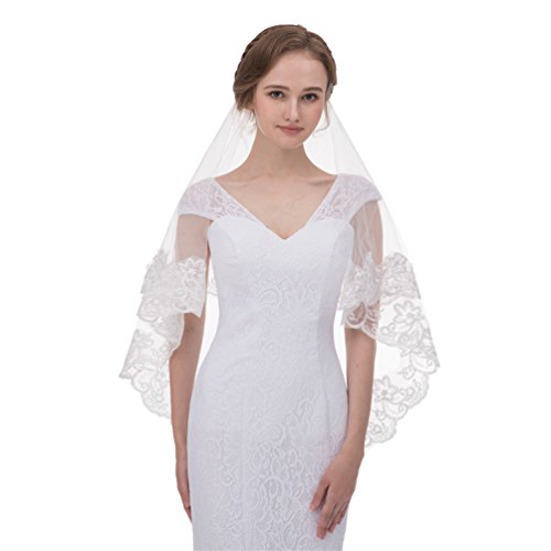 Bridal Veil Wedding Accessories White One-Layer Short Bridal Veils Lace Edge