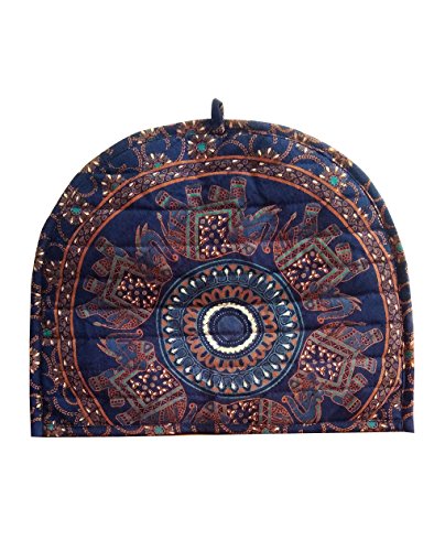 (Shubhlaxmifashion)/Kitchen Dining/Tableware/DIRECT FROM USA/Indian Cotton Mandala Blue Elephant Printed Tea Cosy Abstract Tea Pot Decor Cover Traditional T...