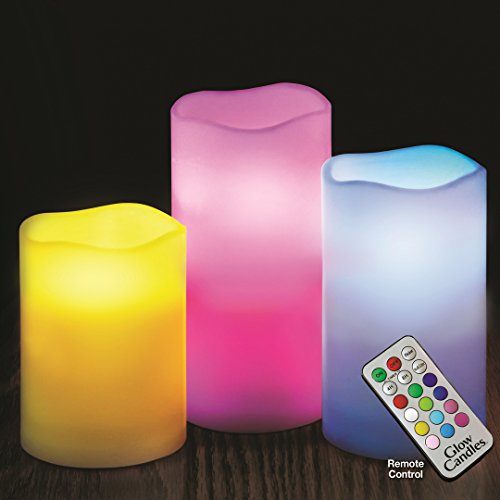 Set of 3 real wax candles are flameless, dripless, and have the option of steady glow OR flicker effect. Set to your favorite color, or cycle through 12 different hues to match any season, any occasion!