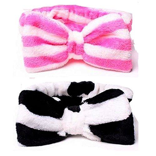 HappyDaily Lovely Supersoft Shower Hair Band - Ideal Hairlace Headband for Washing Face or Makeup (2, Hotpink stripe+Cowmooflage)