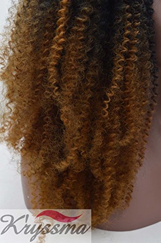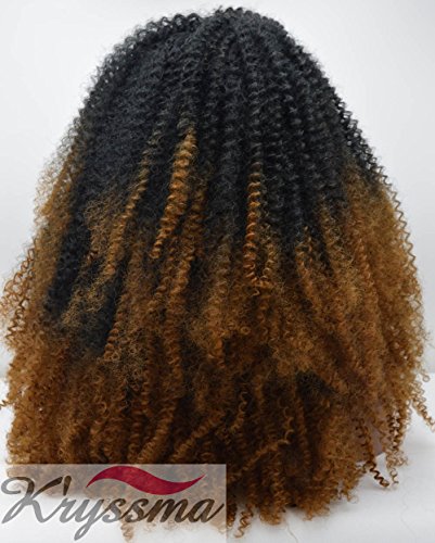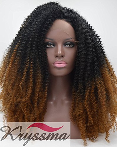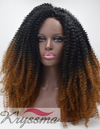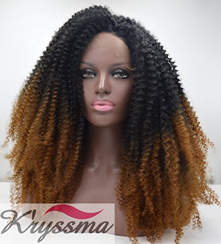 K'ryssma Bouncy Kinky Curly Wigs for African American Ombre Black to Brown Thick Density Lace Front Wig Half Hand Tied Heat Resistant Synthetic Fiber Hair 2 Tones 24 Inches