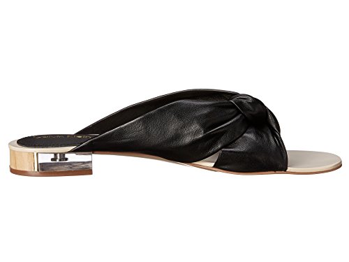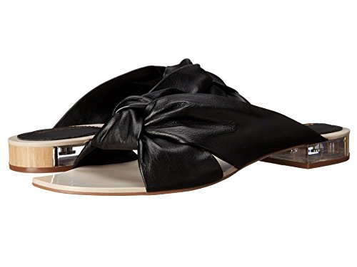 Product DescriptionSoft premiere leather is knotted for a chic twist on a flat sandal. resin, metal and wood heel detail polish this look off for the ultimate chic slip-on sandal.0