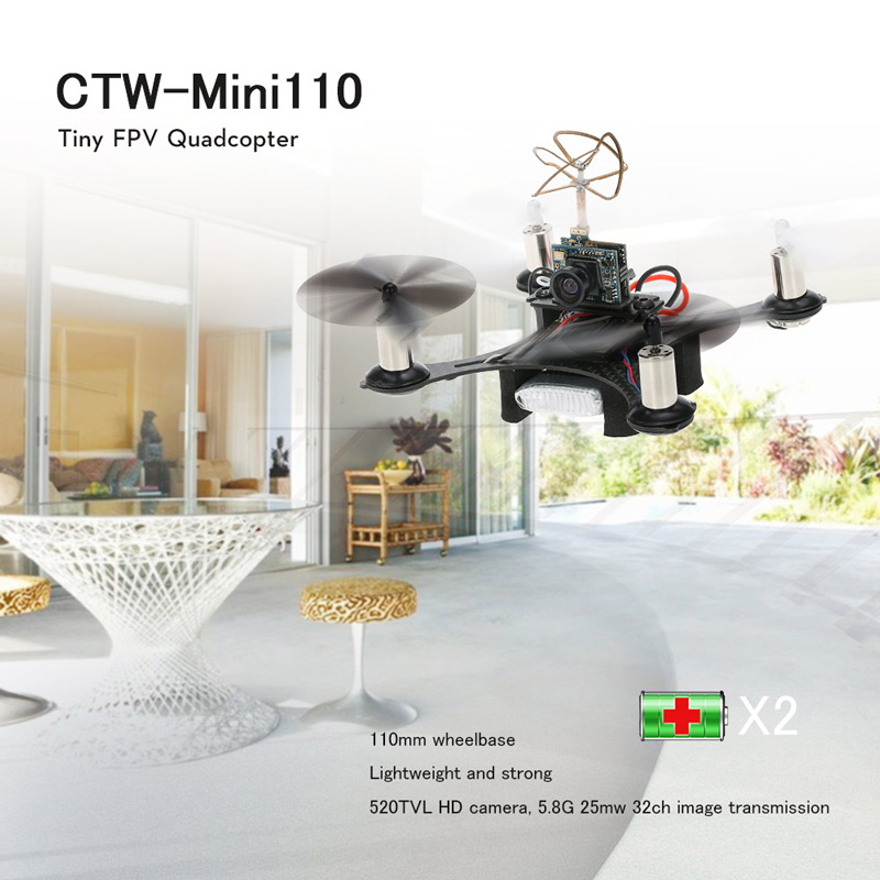 CTW-Mini110 Tiny FPV racing drone RC quadcopter with 520TVL HD camera that is so mini and cute, you only need to be equipped with a remote control and a receiver to experience the indoor FPV flight. A wonderful flying show will be presented!