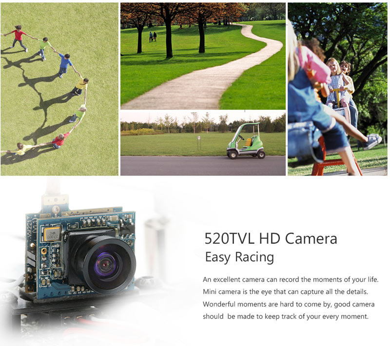 520TVL HD camera integrated 5.8G 25MW 32ch image transmission provides you with a clean image and reliable link to your FPV goggles or monitors (not included).