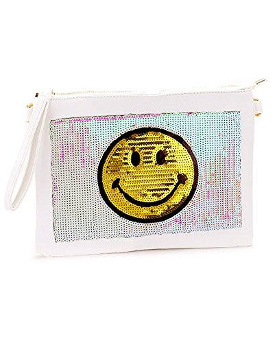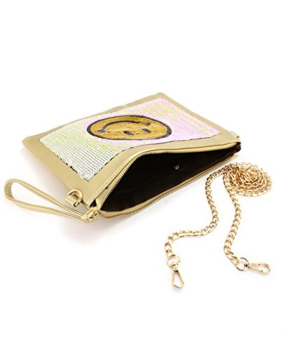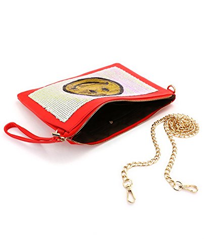 -. Title : NYFASHION101 Sequin Smiley Face Clutch Handbag with Detachable Strap