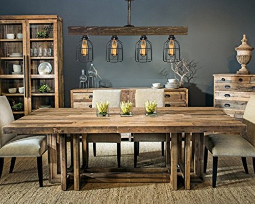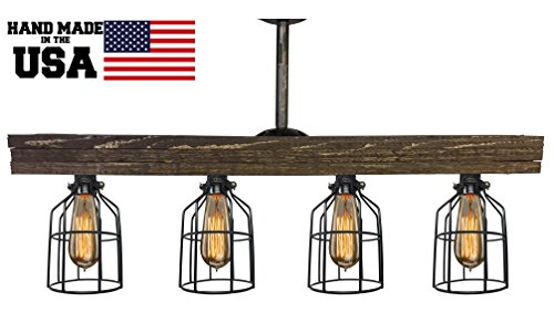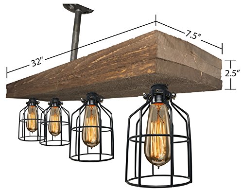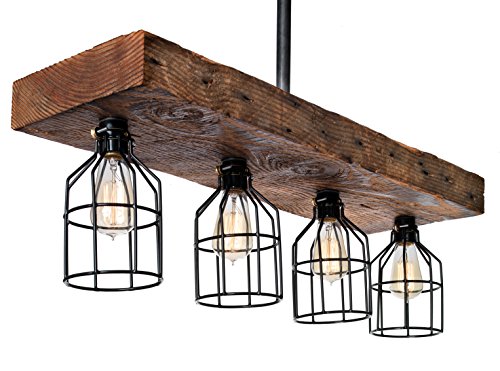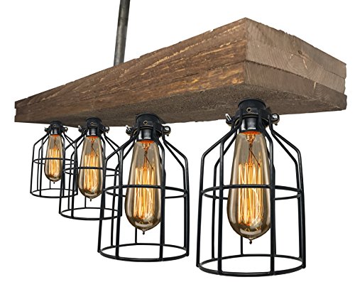 FOUR EDISON CAGES INCLUDED - This walnut color rectangular pendant chandelier has four sockets (bulbs sold separately) and comes with four black metal cages and mounting hardware and requires little assembly. Don't be fooled by others using fence post pickets, we use only top quality aged dry wood.