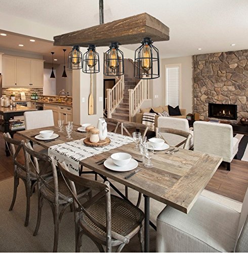 Rustic touches of distressed natural wood create a vintage chandelier that will have all your guests talking. Available with and without cages, this country chandelier will add charm to your home. This chandelier light comes ready to hang in your dining rooms, living rooms, and modern kitchens. We provide two different length downrods with every light so that you can choose the best height for your setting.