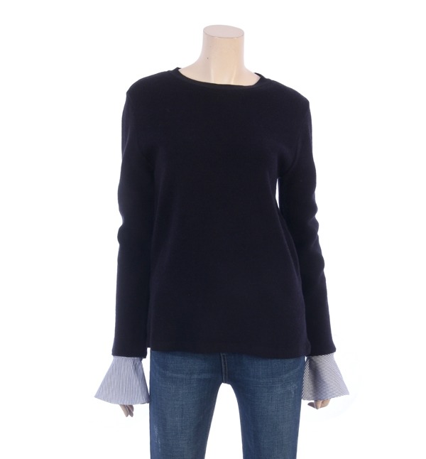 LINE, 배색 러플 소매로 포인트를주어 트랜디한 스타일 감각을 연출하는 티셔츠입니다