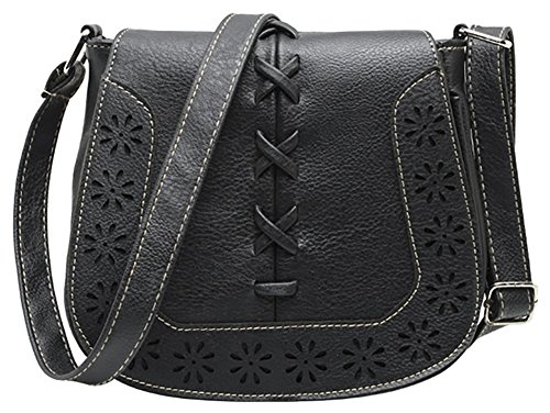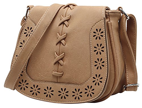 -. Title : Women's PU Sanddle Bag Hobo Crossbody Shoulder Travel Purse with Hollow Lacing