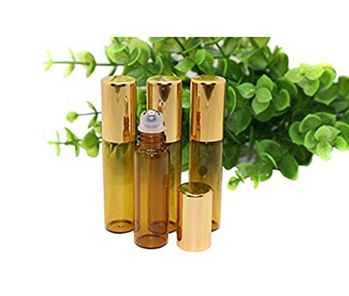 12 Pcs 5ml Empty Amber Glass Roll-on Bottles with Stainless Steel Roller Balls and Golden Cap for Essential Oil Perfumes Lip Balms