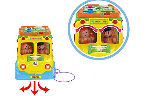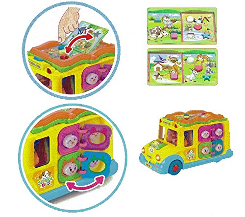 Musical Toy Intellectual School Bus for children. Loads of functions including Music, Sounds, Flashing headlights, and bump and go action. Just turn on the school bus and watch as it drives around the room singing the tune "The Horns on the Bus Go Beep Beep Beep." There is also an option to turn OFF the music.