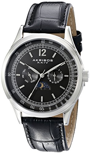 -. Title : Akribos XXIV Men's AK638SSB Retro Multi-Function Stainless Steel Black Leather Strap Watch