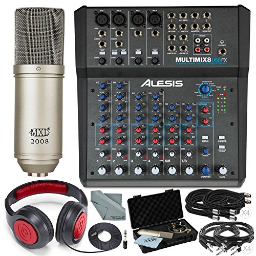 -. Title : Alesis MultiMix 8 USB FX 8-Channel Mixer with Effects & USB Audio Interface Deluxe Bundle w/ Condenser Microphone, Headphones, and More