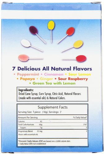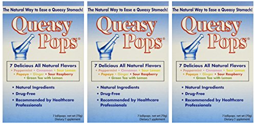 -. Binding : Health and Beauty -. Brand : Three Lollies -. EAN : 0695342002210 -. Feature : Say goodbye to a queasy and upset tummy / Contains powerful essential oils and plant botanicals proven to relieve nausea / Three (3) boxes of our powerful lollipops; 7 lollipops per box; infused with nausea-relieving essential oils of sour lemon, sour raspberry, ginger, peppermint, papaya, green tea with lemon and cinnamon / Completely natural and drug free and 100% safe for toddlers, kids, adults, elderly persons and pregnant moms; each piece is individually wrapped to stay fresh and go with you anywhere / Makes a great companion for the car, airline travel and the amusement park; also provides big relief for those undergoing chemotherapy or post-surgery and anesthesia -. Label : Three Lollies -. Manufacturer : Three Lollies -. MPN : 695342220614 -. NumberOfItems : 1 -. PackageQuantity : 1 -. PartNumber : 695342220614 -. ProductGroup : Health and Beauty -. ProductTypeName : HEALTH_PERSONAL_CARE -. PublicationDate : 2013-04-27 -. Publisher : Three Lollies -. Studio : Three Lollies -. Title : Three Lollies Queasy Pops Lollipops Variety Pack for Nausea Relief, 3 Count -. UPC : 695342002210