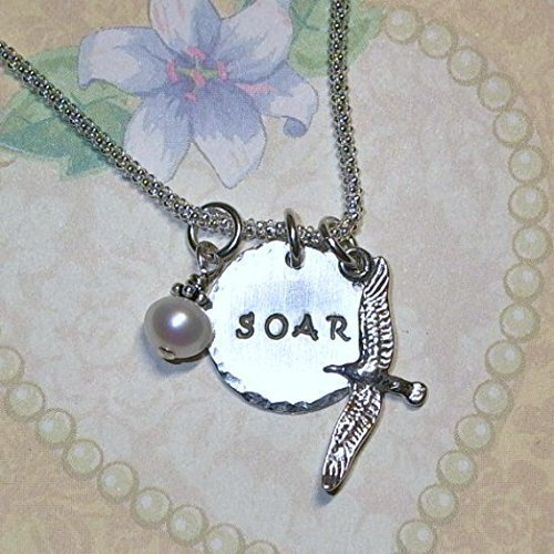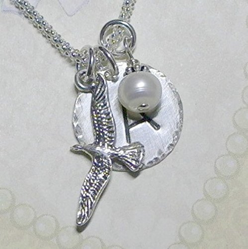 -. Title : Soar Necklace - Seagull Hand Stamped Sterling Silver Charm Necklace - Personalized - Choose Seagull Single Initial or Soar Necklace