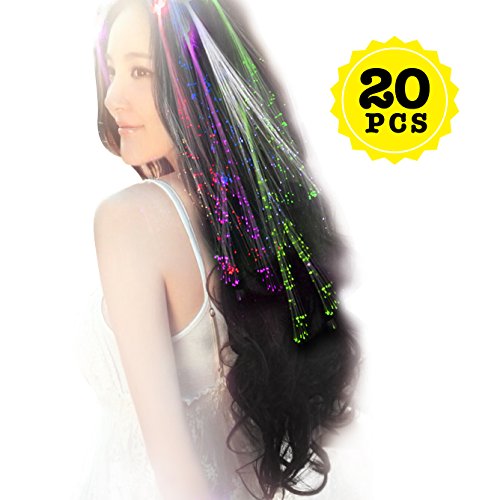 - Shining Lights: The optical fiber LED lights would be shining after turning on the switch. Multicolor LED braids hair tensions dispersed in the back of the hair, for adding an extra flair to the night.It is available to be cut to match natural hair length as you want.