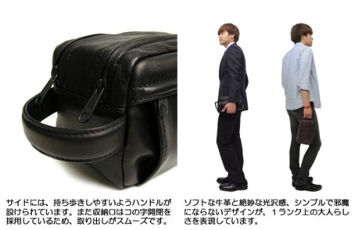 -. Feature : 【素材】牛ステア(クロームなめし、オイル調) / 【サイズ】W240×H120×D100(mm) / 【重量】約 260グラム / 【外側】ジップポケット×1 / 【内側】ベルクロ留めポケット×1