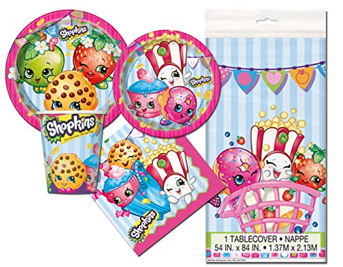 Shopkins Themed Birthday Deluxe Party Pack Serves 16 Plates Cups Napkins & Tablecloth