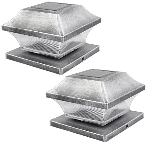 Solar Light,Post Cap Lights 4 x 4 Plus,Super Bright 10 Lumen LED Sogrand Silver Vinyl,Outdoor Fence Deck Lamp,For Yard,Pathway,Patio,Driveway,Walkway,2Pack