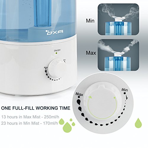 Portable OXA Ultrasonic Humidifier which is convenient, with low power consumption and silent, for your bedrooms, office and any small-medium size rooms. Cool Mist Humidifier Ultrasonic humidification function, solves the problems of air drying and static electricity and achieves skin care and cosmetic effects Adjustable humidifying capacity lnnovative tech switches can adjust the space humidification environment Automatic water shortage protection Humanized lighting presents the automatic water shortage protection, automatically protecting your machine Rotatable mist nozzles output Adjusts moisture output to meet your comfort level Tips: 1.Use pure water with OXA Ultrasonic Humidifier can reduce water spot and mildew 2.Wash water tank and water valve every two weeks help create more fresh mist Specification Rated power: 25W Input voltage: 100-240V/60HZ External specitification: 180*160*310mm Water tank capacity: 4L Net Weight: 0.94kg Humidifying amount: ≤250ml/h Operasonic Mode: Knob tupe 0 |