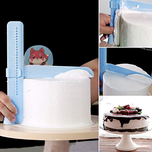 Studio : Future Publisher : Future Product Description Product: adjustable height cake scraper Material: food grade plastic Size: 8*9 in Function: adjustable height Use for: cake cream smoother Tips: When making the cake, put butter on the cake, we can use this tool ,adjust the height of tool according to cake height, then place it vertically on the edge of the turntable and close to cake on top and side. Gently rotate the turntable, this tool will make the surface of butter smooth easily. Package included: 1 x adjustable cake smoother 0