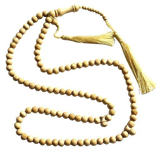 NATURAL COLOR YELLOW CITRUS WOOD TASBIH - 8MM 99-BEAD PRAYER BEADS - WORRY BEADS WITH 2 BEUITIFUL TASSELS