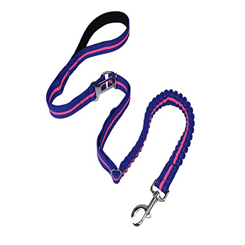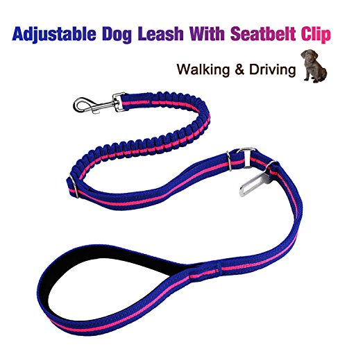 Feature: Dog Leash Seat Belt Combo:Designed to bring more peaceful and enjoyable moments when take your dog on walks or for a drive.Keep your beloved dog safe no matter where you go. Adjustable Length Elastic Design: adjustable length from 46.6" to 54.4 " and as seat belt length 29.9" making the dog leash suitable for Medium Big size dogs in a variety of positions like sitting, standing or lying down comfortably, besides walking and running. Safety: The pet Seat belt function is used to protect your pet, keeping the dog in the back seat, and away from the center console when you drive. While the reflective stitching maintains high visibility at night for safety. Top Quality Materials: Made of TOP quality nylon webbing and elastic bungee, plus the solid aluminum alloy swivel snap and buckle to guarantee most durability. Easy Convenient: Simply clip the seat belt onto your pet harness and snap the belt tab right into the seat belt , securing your pet into place. The seat belt clip wide 0.79"(2cm) fits most vehicles and easy to release from the seat belt slot, hassle-free clip simply hook the leash to your pet's harness. Specifications: Width: 1" (26mm) Adjustable size: 46.6"-54.4"(118cm-138cm) Extended length: 65.7"(167cm) Seat belt size:29.9"(76cm) Belt Tab Width: 0.79"(2cm) Caution:Dogs should not be allowed to chew on the leashes to avoid damages, please don't leave the leash set on your pet unattended. 0
