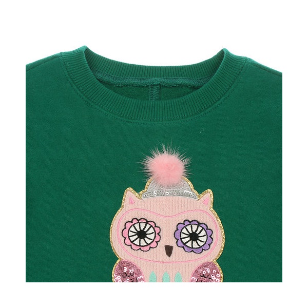 -부엉이 아플리케 포인트를 그린 컬러 티셔츠 입니다.