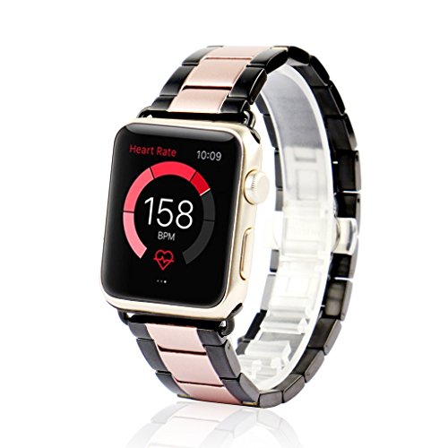 -. Title : AWSTECH New 38mm Stainless Steel Replacement Smart Watch Band Wrist Strap Bracelet with Butterfly Buckle Clasp for Apple Watch All Models Black Pink
