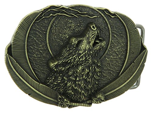 (Yippo Accessories)/Accessories/Belts Buckles/DIRECT FROM USA/Howling Wolf Moon Bronze Belt Buckle