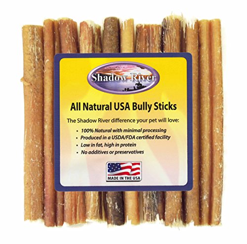 -. Feature : MADE IN USA - Proudly sourced from premium USA raised beef and made in a USDA approved facility in the USA / FOR SMALL TO MEDIUM DOGS AND PUPPIES - Our 6 inch Regular bully sticks average 3/8" to 1/2" thick / ALL NATURAL CHEWS - No additives or preservatives, low in fat, high in protein, completely digestible / IMPROVES DENTAL HEALTH - Chewing action helps remove harmful plaque and tartar from your dog's teeth / LONG-LASTING TREATS - Provide extended gnawing and chewing pleasure for your dog or puppy