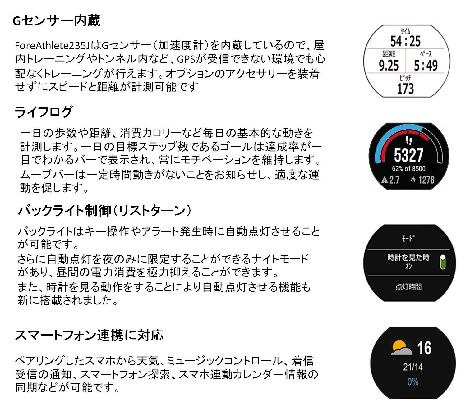 Notification function (Notify ForeAthlete 235 J of calls and messages of smartphone when connected to BLE): ○