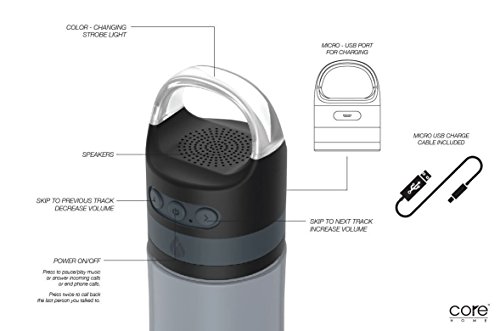-. Binding : Electronics -. Brand : Tal -. Color : Blue -. EAN : 0848974107239 -. Feature : Compatible with IOS, Android, Phones, Tablets / Microphone for answering phone calls, Call back feature to last caller / Water Resistant, BPA free, Made with shock resistant tritan / Fun Color-changing strobe lights on handle (can be toggled on/off) / 4 hour battery life (based on normal volume), Micro-USB port for fast and easy charging, USB cord included -. IsEligibleForTradeIn : 1 -. Label : Tal -. Manufacturer : Tal -. Model : WM1408 -. MPN : 1408-AMZ -. PackageQuantity : 1 -. PartNumber : 1408-AMZ -. ProductGroup : CE -. ProductTypeName : PORTABLE_AUDIO -. Publisher : Tal -. Size : 28 oz -. Studio : Tal -. Title : TAL Bluetooth Wireless Speaker 28 oz Water Bottle | With Micro-USB Port, Strobe Lights, and Microphone for Answering Phone Calls | Compatible with iOS, Android, iPhones and Tablets -. UPC : 848974107239