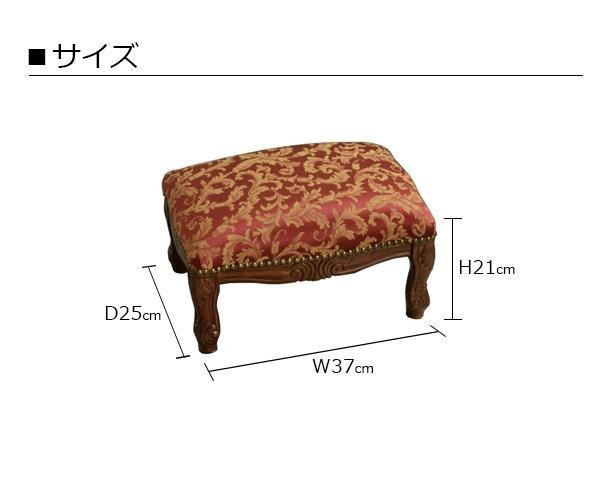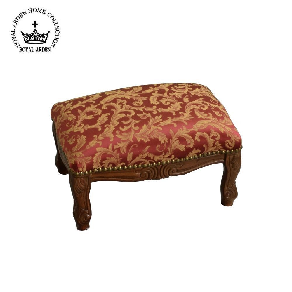 アンティーク調のおしゃれなスツールです。エレガントなお部屋にぴったり。 製造国:イタリア 素材・材質:脚:天然木ビーチ材ファブリック:綿65%、ポリエステル35% ※サプライヤー直送品 ※2019年4月下旬入荷分予約受付中【商品名】ロイヤルアーデン イタリアスツール ミニスツール レッド 茶脚 51421