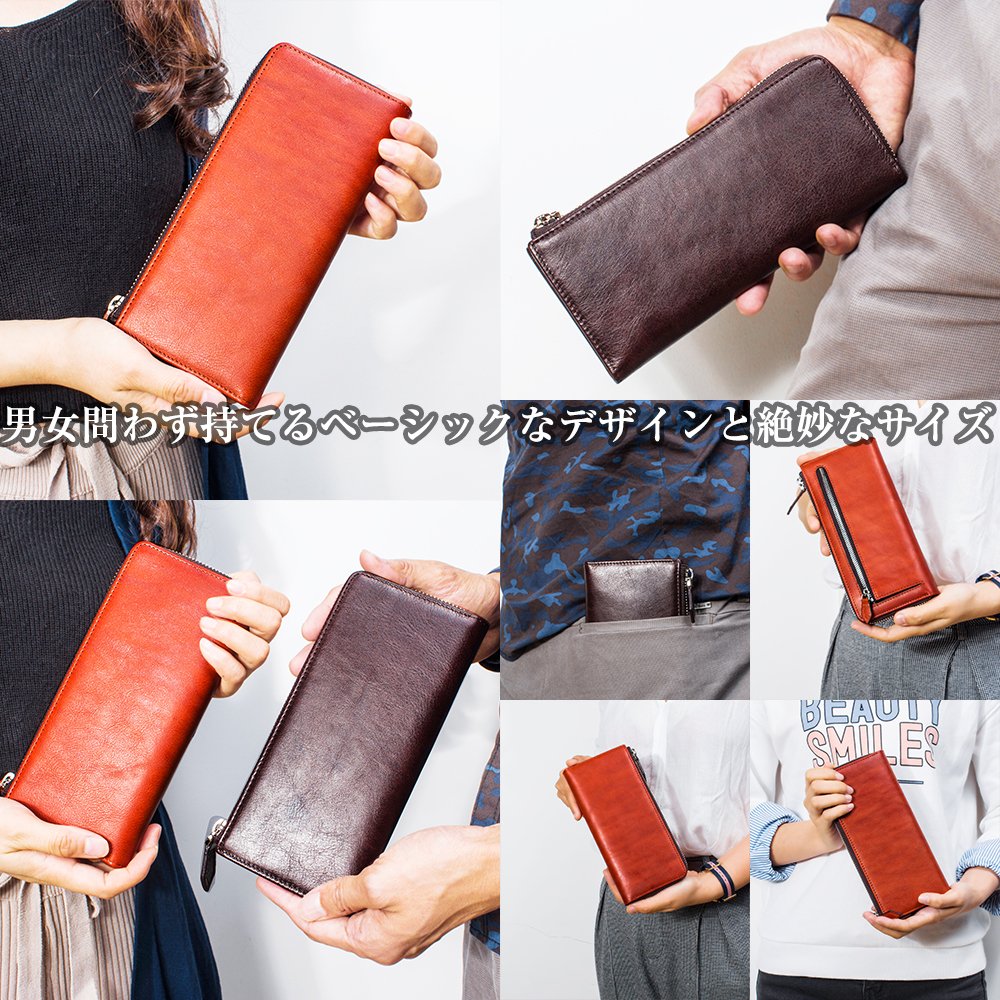 Italian real leather with gloss and depth ♪ refreshing Compact storage of thin long wallet!