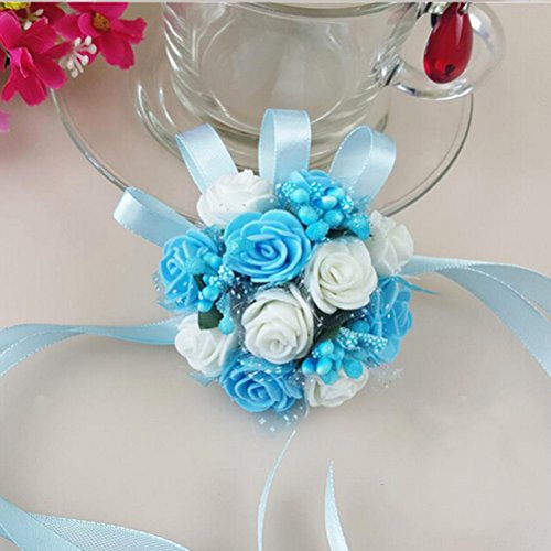 NUOLUX Wedding Bridal Bridesmaid Wrist Flower Pearl Bracelet Foam Hand Flower (Blue and White)