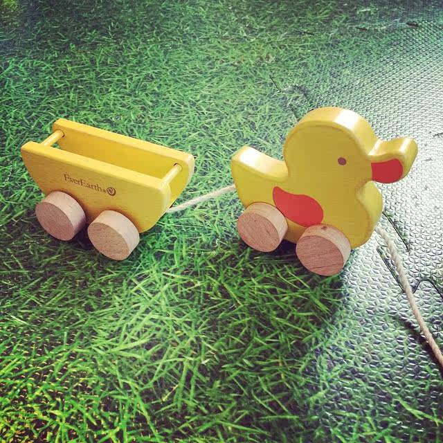 拖拉玩具小黄鸭可以成为逗引的工具开发宝宝能力,