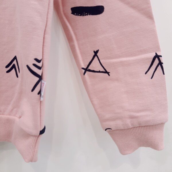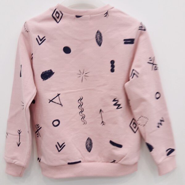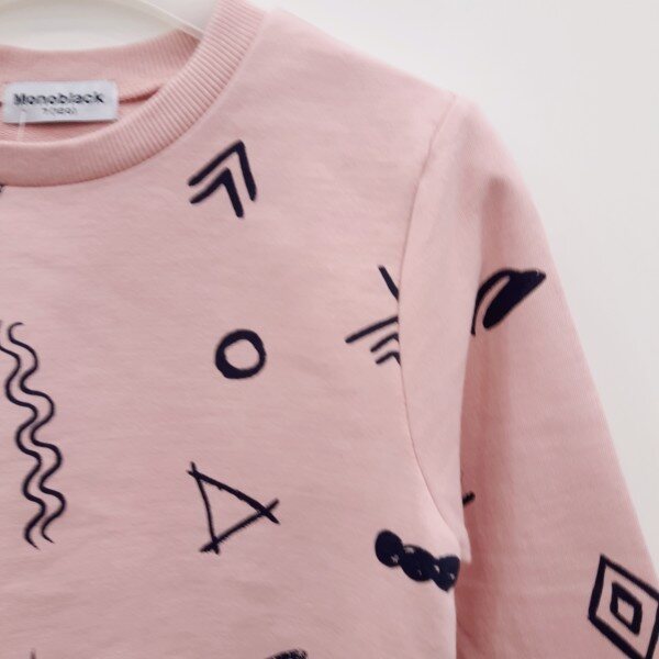 기하학 도형이 나염 되어있는 핑크 맨투맨 티셔츠입니다