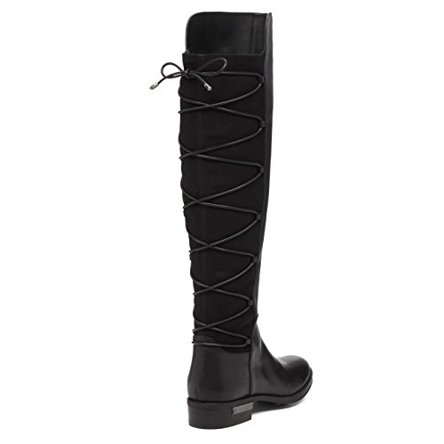 Studio : Vince Camuto Publisher : Vince Camuto Binding : Shoes Product Description *This sleek and sophisticated boot ensures all eyes stay on you *Leather upper with stretch neoprene back and lace-up detail *Approx. 19" shaft height with 14.5" circumference *Partial side zipper *Lightly cushioned footbed *1" heel height 0