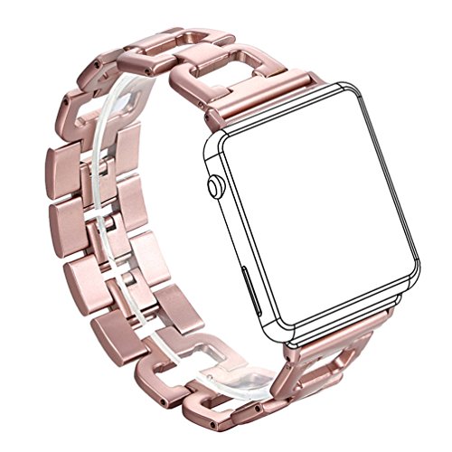 For Apple Watch Band, Wearlizer D Type Band Replacement iWatch Stainless Steel Strap for Apple Watch Series 1, Series 2, Sport, Edition - 38mm Pink Gold