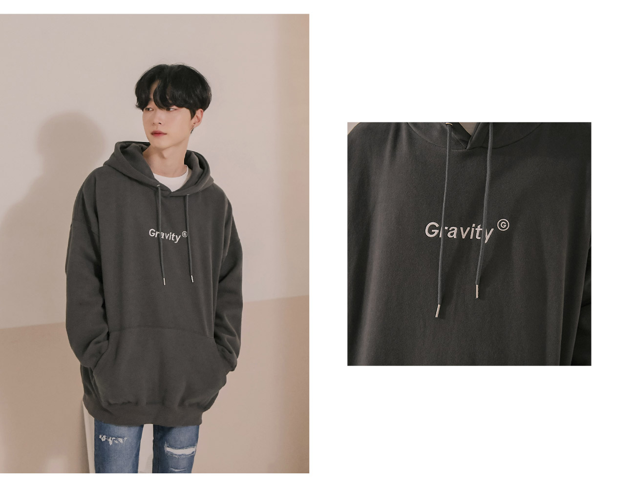 그라비티 양기모 오버핏 후드티
