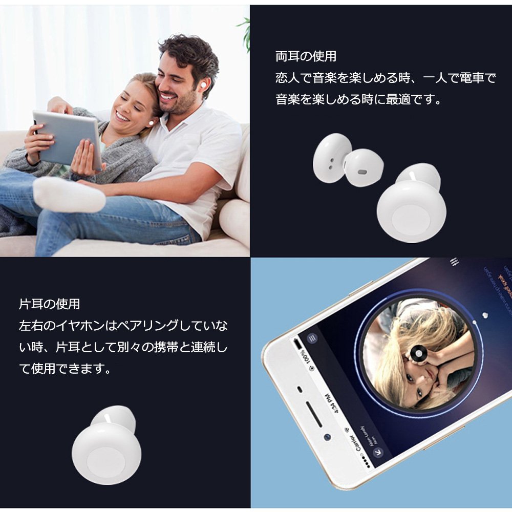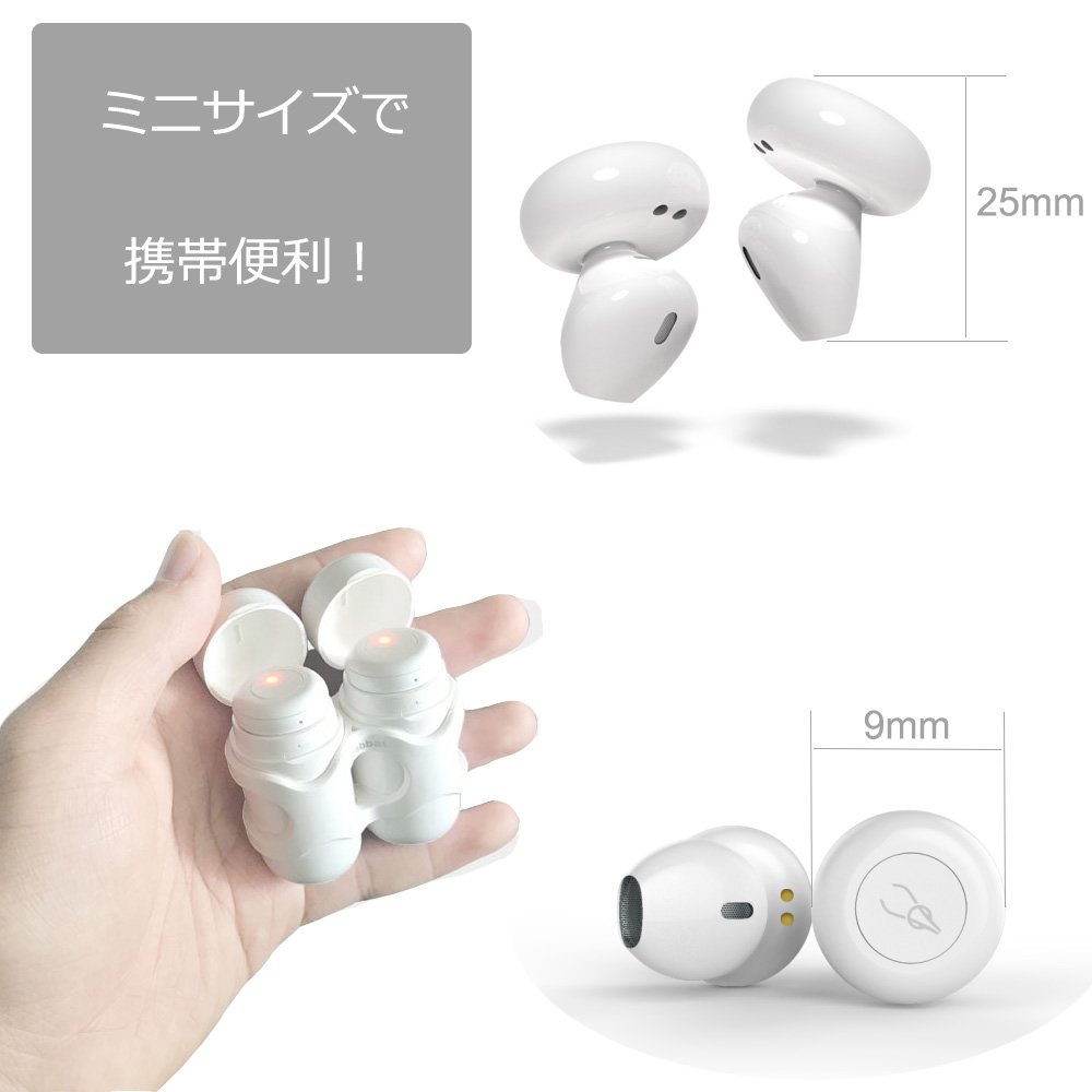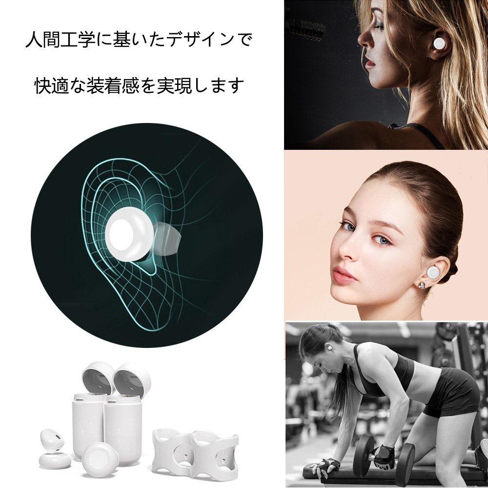 完全無線なワイヤレスイヤホン、ケーブルを捨て、より快適な装着体験になります。本機重量は5g,コインのような大きさの超ミニ型。とても軽く、重たい感や耳に引っばる感じはありません、スポーツや混雑の電車の中でも、ケーブルの邪魔から完全に離れます。