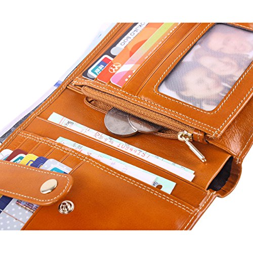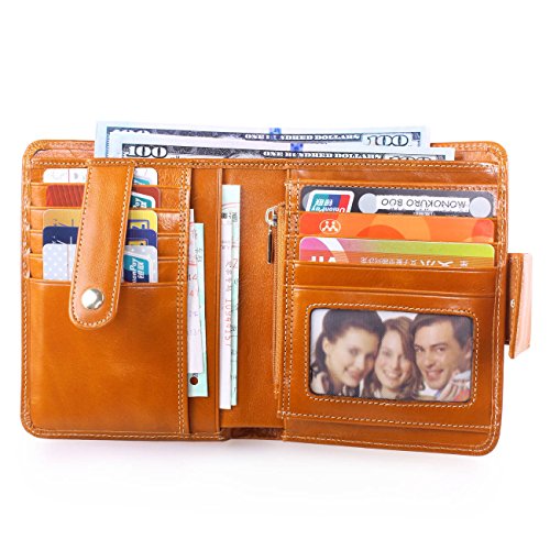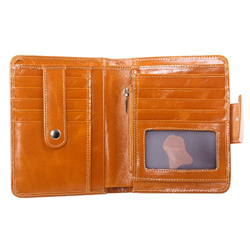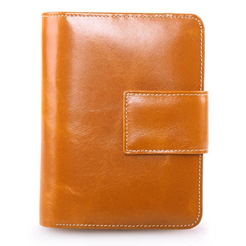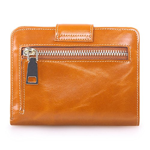 - Made of high quality top grain oil wax cowhide, the top grain oil wax cowhide makes the purse more luxury. Come with light gold hardware and durable polyester lining.These make the purse more luxury.
