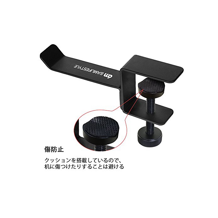 상처 방지:클램프용의 나사부에는 상처 방지용의 쿠션을 탑재 하고 있으므로,책상을 상처 붙이거나 하는 것은 없습니다.(이므로)그래서,lak궤 폴 등 폭넓은 장소로 설치에 옵니다.또한폐사의 클램프식의 스탠드는 헤드폰을 허공에 뜨게 하는 때문에,높이가 있는 헤드폰에서도 대응에서 옵니다.(종래의 스탠드식의 홀더라면,헤드폰이 책상 에 즈음해서 끝날지도 모릅니다.)