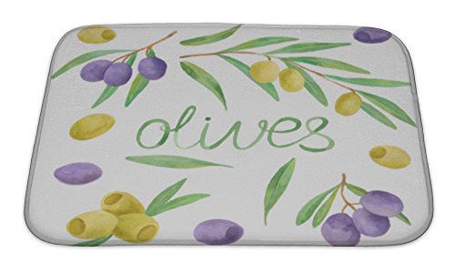 Gear New No Slip Microfiber Memory Foam Hand Drawn Watercolor Painting Olives Bath Rug Mat, 24" X 17"