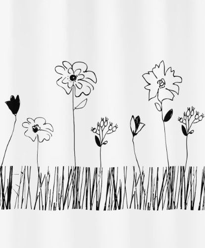- Black and white flowers in tall grass on a solid white background with a contemporary feel to the design.