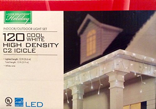 LIVING SOLUTIONS 120 COOL WHITE HIGH DENSITY C2 ICICLE LIGHTS NIB LED CHRISTMAS LIGHTS