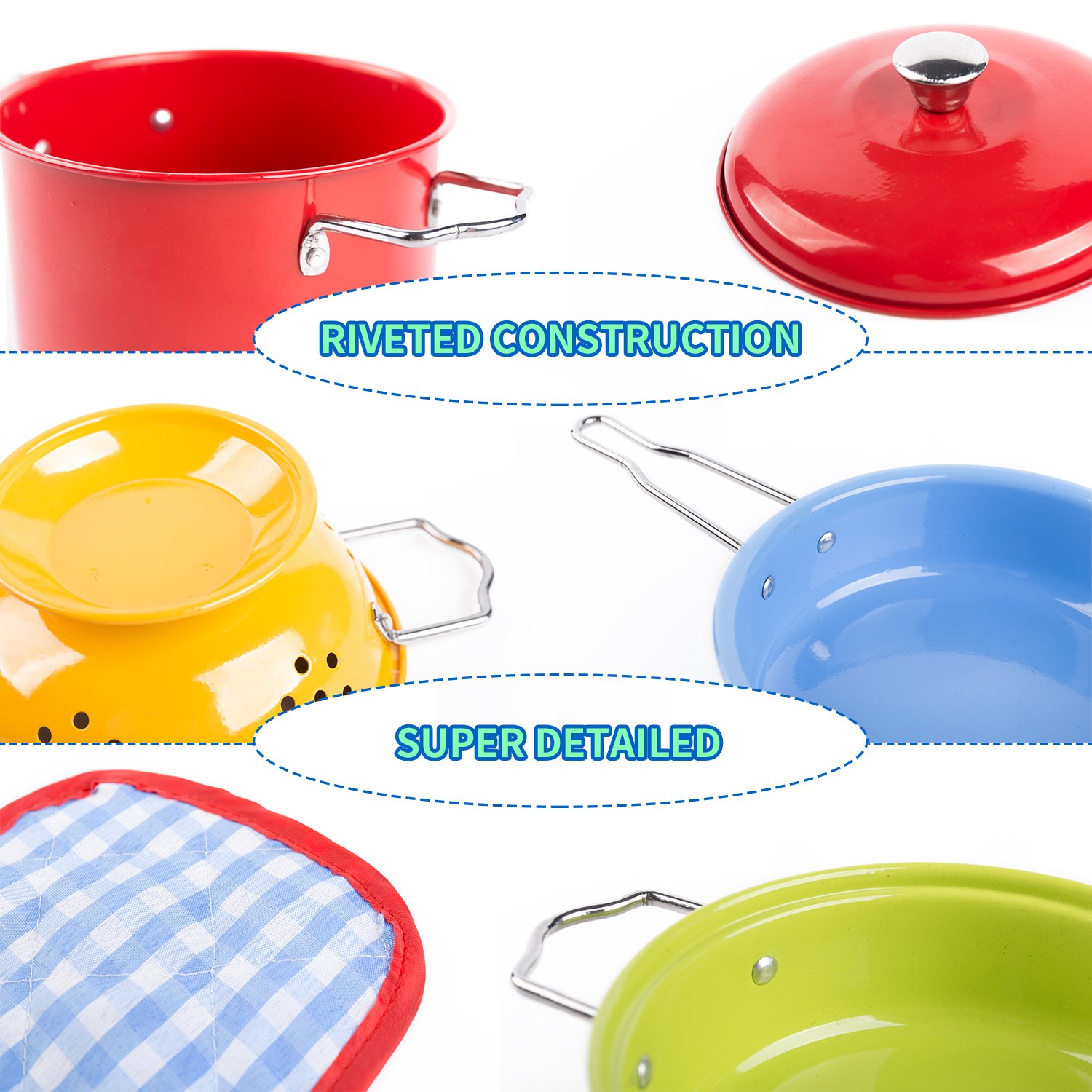 * 精致な包装バック:全部11個の鍋が同梱されておりますので(鍋、鍋ぶた、フライパン、布など)、子供達にシェープの夢をプレゼントする!