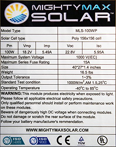 100 Watts 100W Solar Panel 12V Poly Off Grid Battery Charger for RV - Mighty Max Battery brand product