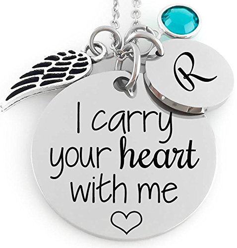 -. Brand : Remember Me Jewelry -. Color : Silver -. Department : womens -. IsAdultProduct : 0 -. ProductGroup : Guild Product -. ProductTypeName : GUILD_JEWELRY -. Title : Memorial Necklace - I carry your heart with me - Angel Wing, Initial Charm and Birthstone Crystal
